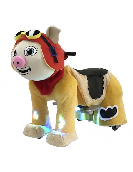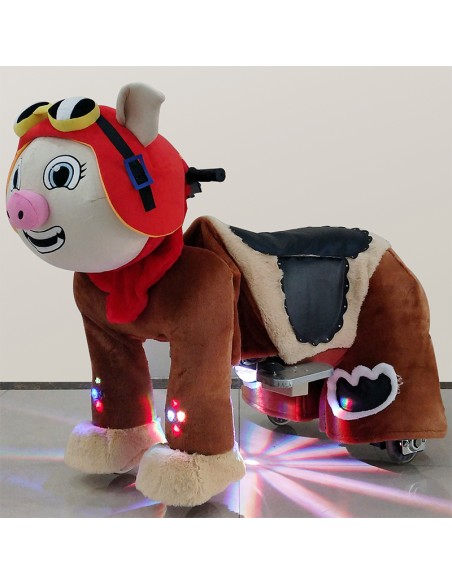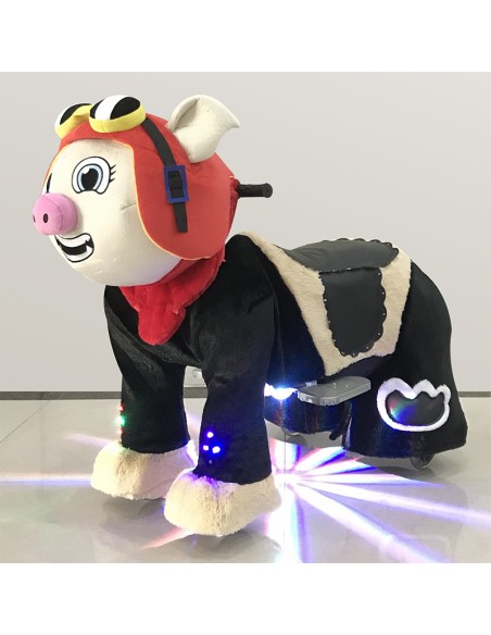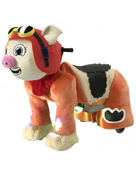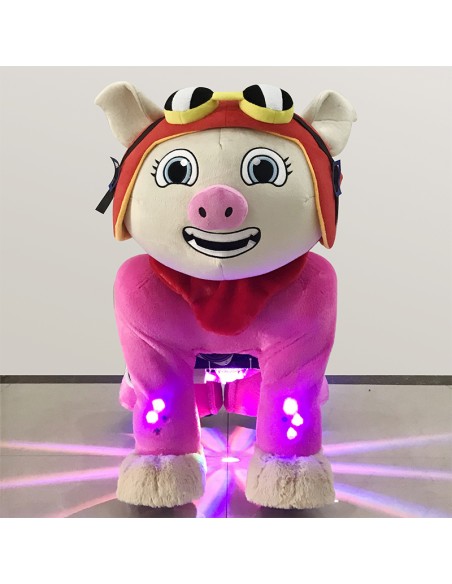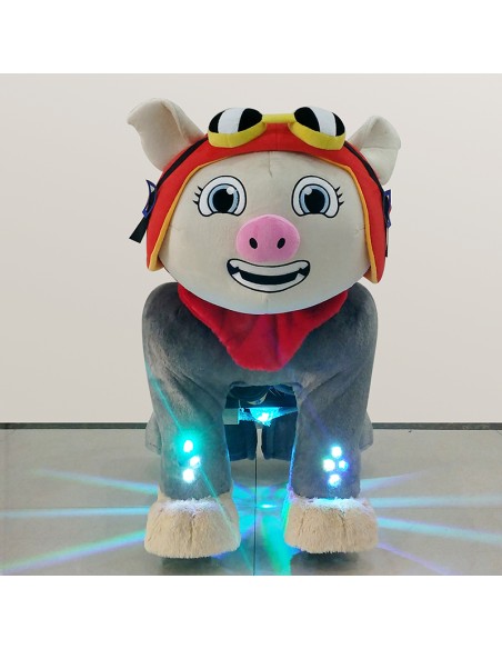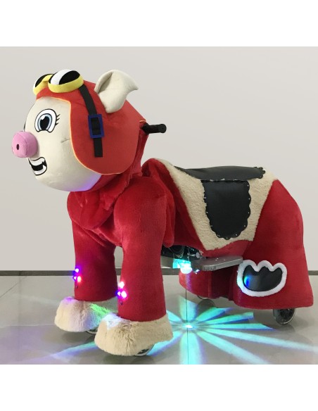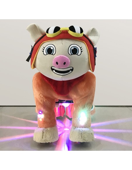 Red Pig Plush Electric Walking Animal Spotlight Ride for Kids