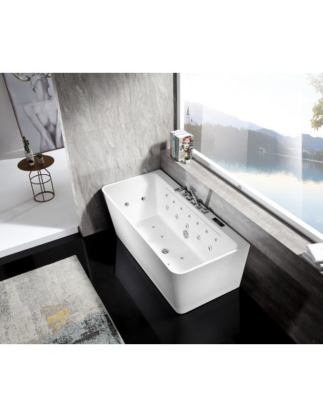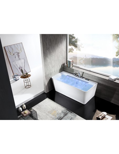 Het bubbelbad systeem is voorzien van een elektronische bediening. Tevens beschikt het bad over een doorkijk van glas, waardoor het een echt een schitterend massage-bad is!