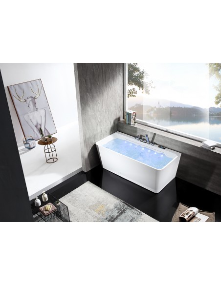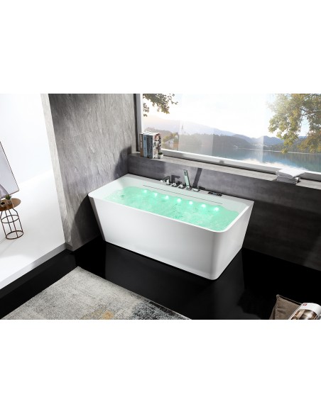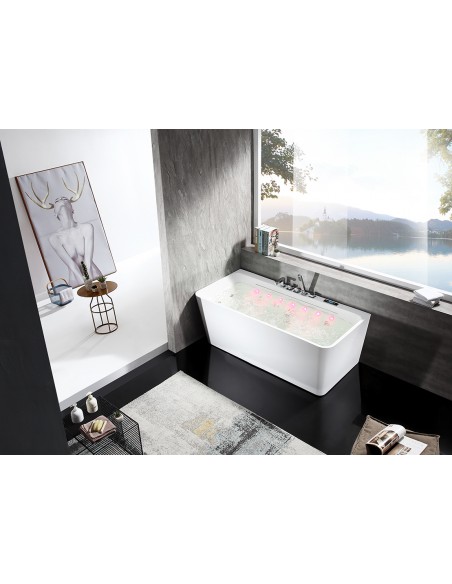 Het bad beschikt over 9 kleine jets, 8 luchtbellen jets en 7 gekleurde jets.