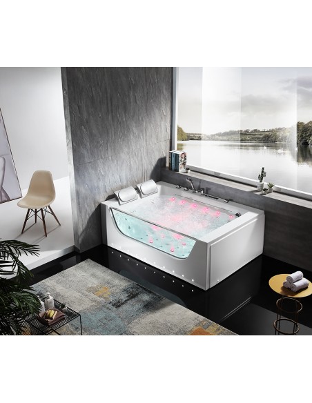 Het bubbelbad systeem is voorzien van een elektronische bediening. Tevens beschikt het bad over een doorkijk van glas, waardoor het een echt een schitterend massage-bad is!
