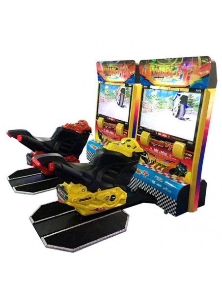 Deze race-arcade-machine dompelt de speler onder in de race-ervaring door ze in de stoel van een auto of een motorfiets te plaatsen en stuurbedieningen te gebruiken om het circuit te manoeuvreren. Arcadegames zijn geschikt voor gebruik in sportscholen, ontspanningsruimten, clubs, cafés, winkelcentra enz. Begin het spel door eenvoudig de munt in te voeren!