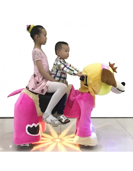 Gele en Bruine Hond Pluche Elektrische Lopen Dier Ride voor Kinderen