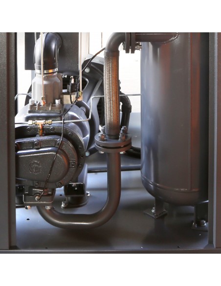 Schroefcompressoren zorgen voor voldoende luchttoevoer, hoog rendement en weinig geluid - er is dus geen behoefte aan geluidsreductie.