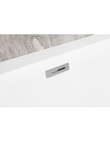 Dit bad voorzien van een slank rechthoekig overloopgat dat voorkomt dat het badwater over de rand loopt.